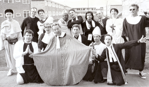 Prestatyn 1988. Chris Hill dressed as the Archbishop in the centre. Me and Pete Tong are also in this picture (Credit: Bangsy)